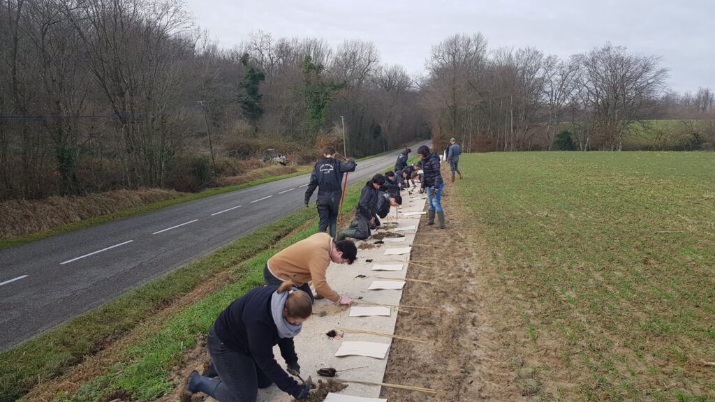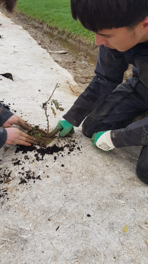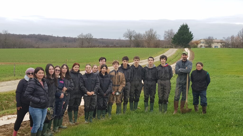C’est de saison : en hiver, on plante des arbres ! C’est ce qu’on fait les élèves du lycée agricole de la Côte-Saint-André sur les parcelles du GAEC du Varzay à Saint Julien de l’Herms. Ce chantier important visait l’installation d’1 km de haie, soit près de 1 000 arbres à mettre en terre. Ce sont donc 40 élèves qui ont été mobilisés sur une journée entière pour prêter main forte aux 2 associés de l’exploitation et à l’association Ecologia – Biodiversité et Concertation qui a organisé le chantier. Nous les remercions tous pour leur accueil et leur bonne humeur tout au long de la journée.